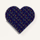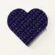 Heart-shaped notebook with a spiral binding displayed in two views: front and back. Both sides feature a dark blue background with colorful abstract patterns.