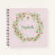 Una hermosa corona floral que puedes personalizar, este cuaderno tiene un fondo gris claro con una corona floral verde y rosa con un arco rosado encima. En el centro está tu nombre escrito con tipografía verde adorable. ¡Haga su pedido hoy mismo! Obras de arte de flores de flores creadas por: AMBilustrations http://www.etsy.com/shop/AMBillustrations/