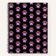 Hermosas patas mascotas con colores violeta y rosa sobre fondo negro.