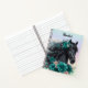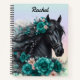 Cuaderno Hermoso caballo negro con flores Verde azuladas