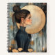 Una hermosa chica con la luna a su lado. Los tonos cálidos de oro y azul resaltan el calor de su impresionante resplandor. Cuando quieres anotar ideas, revistas o esbozos, este cuaderno hace que cada página se sienta un poco más mágica. Extremadamente versátil y listo para todo lo que se cree.