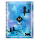 Manténgase al tanto de su apretada agenda con este portátil personalizado. Cubierta: En el centro, blanco contra negro, se encuentra la primera letra de tu nombre (en mayúsculas) dentro de un marco con forma de diamante. Bajo él va tu nombre de pila, en negro, en letras cursivas. En el fondo de una galaxia de color azul oscuro, hay tres siluetas: una chica y su gatito en un columpio con una pequeña flor entre ellos en la parte superior derecha; un gato paseando por la línea blanca que enmarca la cubierta; y una pareja de gatos disfrutando de la compañía del otro en una rama de árbol en la parte inferior izquierda.