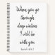 Un bello verso de la Biblia de Isaías 43:2, este cuaderno hace un diario encantador. Dice: "Cuando pases por aguas profundas, estaré contigo" con una bonita fuente cursiva negra. ¡Compra el tuyo hoy!