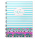 Hermoso ilustracion elefante ornamentado sobre rayas turquesas con Monograma y Nombre. Diseño de Inge Lewis. Cambie la letra y el nombre al suyo haciendo clic en el botón personalizar. Bonitos regalos para cualquier amante de los elefantes. Encontrará más elementos coincidentes en la tienda ingeinc.com.