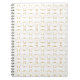 Elegante cuaderno con hermoso patrón geométrico dorado sobre fondo blanco. Estos puntos de polka dorada forman un patrón giratorio de cuatro brazos.