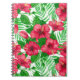 Diseño de patrones acuáticos con flores de hibisco y hojas de palma