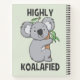 Altamente Koalafied - Altamente Calificado. Un lindo dibujo gráfico gris personalizado de Koala con un juego de palabras de un oso koala. El diseño de animales salvajes divertidos y dulces. Bebé salvaje australiano en un árbol de eucalipto con hojas de goma