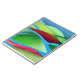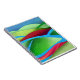 Un paisaje abstracto con colores y texturas vibrantes que muestran colinas flotando sobre el hielo en tonos verdes, azules, cian, rojo y rosa.