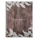Cuaderno Hojas blancas y plateadas y madera rústica elegant