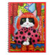 Este es un tributo a la artista Yayoi Kusama, muy conocida por su nueva postura sobre los puntos de polka, retratada aquí como un lindo gato. Si lo desea, puede personalizar el color de fondo de este bloc de notas. Se muestra aquí en rojo, pero también se vería genial en otros colores. Esta imagen está disponible en otros productos de mi tienda Zazzle. Un gran regalo para un ser querido.