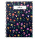 Este es un cuaderno personalizado con hongos mágicos con un patrón de flores extravagantes en el fondo oscuro. puede cambiar el nombre del diseño usando un botón de personalización.
