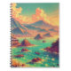 Esta impresionante imagen retrata una serena escena costera al atardecer, combinando la arquitectura tradicional japonesa con un vibrante paisaje costero. Los tonos dorados del cielo reflejan las aguas turquesas y brillantes, salpicadas de islotes rocosos y pequeños barcos. A lo lejos, un moderno horizonte urbano descansa sobre majestuosas montañas, creando una armoniosa fusión de naturaleza y vida urbana. El ambiente desprende calidez, nostalgia y tranquilidad