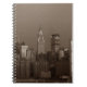 Fotografía de arte de viaje en color marrón sepia - Horizonte de la ciudad de Nueva York, edificio Chrysler y el río