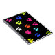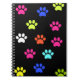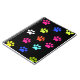 Este diseño presenta huellas de pata multicolor en blanco, violeta, verde, rosa, azul, amarillo y naranja sobre un fondo negro.