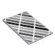 Patrón geométrico lineal, rectangular, rayado de tonos plateados, grises y negros.