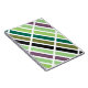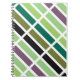 Patrón geométrico lineal, rectangular, rayado de tonos negros, púrpura y verde.