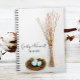 Crea un libro de visitas o un libro de consejos para recién casados cuando personaliza el encantador Bird Nest, Eggs y Pussy Willows Boda Spiral Notebook. Este personalizado libro de notas nupciales presenta una pintoresca fotografía natural de un nido de pájaro de madera lleno de huevos moteados de azul y una botella de leche de vidrio vintage con ramas de sauce y satén blanco. Perfecto para la pareja que planea un boda de marzo, abril o mayo de primavera o una ducha de novia.