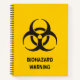 Icono de advertencia de riesgo biológico sobre fondo amarillo. Texto personalizado. Fondo repitiendo sin inconvenientes en la parte posterior.