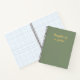 Un cuaderno lindo y gracioso con un fondo verde sabio moderno en ambos lados y la tipografía de escritura en oro dice 'Pensamientos de un genio'.