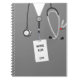 Cuaderno de enfermería creativo con exfoliaciones de hospital con temática médica y diseño de placa de identificación. Editar texto para añadir el nombre de la enfermera y el año.