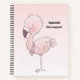Portátil espiral con un flamingo rosa dibujado a mano.