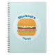 Un cuaderno de espiral personalizado con un ilustracion de una simple hamburguesa. Tomate lechuga y carne de res. Sencillo y delicioso.