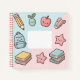 Una colección de adorables ilustraciones de portada de cuadernos muestra un lápiz, manzana, estrella, mochila, libros coloridos y una pequeña planta, para volver a la escuela creando una alegre atmósfera escolar.