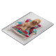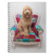 Un feliz Goldendoodle sentado en una colorida silla con motivos. Este adorable cachorro reluciente parece ser más grande que la silla, pero nunca demasiado grande para sujetarse en los brazos. Con su lengua fuera, mirando a la cámara en esta foto, haría el compañero perfecto. Descubre muchos cachorros más lindos aquí en Zazzle con Getty Images.