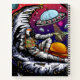 Arte vectorial original de un astronauta que tiene queso de luna y pasa una tajada a un alien. Creado en vector.