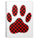 Impresión de garras de perro con patrón cardíaco. Dibujo original en rojo y negro.