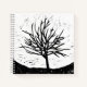Huella de lino blanco y negro de la silueta de un árbol otoñal.