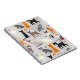 Gato blanco, gato negro, gato manchado, gato persa, gato siamés, gato esmoquin con huellas de pata en un fondo de color claro.