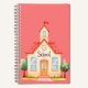 Cuaderno infantil con edificio escolar ilustrado