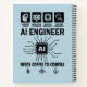Este divertido diseño de Ingeniero de IA es perfecto para cualquier persona apasionada por la codificación, el aprendizaje automático y la inteligencia artificial. Con un estilo limpio y moderno inspirado en la tecnología y un divertido tema de café, es ideal para programadores, desarrolladores, científicos de datos y fanáticos de la tecnología. Una excelente idea de regalo para amantes del café en el mundo de la tecnología que disfrutan codificando y trabajando en proyectos de IA. Adecuado para cumpleaños, entornos de trabajo o uso diario informal.