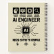 Este divertido diseño de Ingeniero de IA es perfecto para cualquier persona apasionada por la codificación, el aprendizaje automático y la inteligencia artificial. Con un estilo limpio y moderno inspirado en la tecnología y un divertido tema de café, es ideal para programadores, desarrolladores, científicos de datos y fanáticos de la tecnología. Una excelente idea de regalo para amantes del café en el mundo de la tecnología que disfrutan codificando y trabajando en proyectos de IA. Adecuado para cumpleaños, entornos de trabajo o uso diario informal.