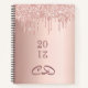 Un rosa falso de fondo metálico dorado con elegantes goteos en purpurina de oro rosa falso, pinturas de goteo. Plantilla de un año (boca abajo) Personalice y agregue sus letras de monograma, iniciales. Texto de oro rosa oscuro. Usar como cuaderno de bocetos, para tomar notas, como diario. EN 2021 RECIBIRÁ UNA NOTIFICACIÓN DE QUE TENDRÁ QUE REVISAR EL NÚMERO 21 EN ROJO. ESTO ESTÁ BIEN Y NO TIENES QUE HACER NADA.