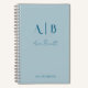 Cuaderno personalizado moderno en azul pastel con nombre e iniciales.