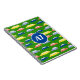 Cuidado, personalizado, colorido cuaderno de desfile de autos para escolares con iniciales gigantes.
