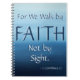 Este cuaderno es un recordatorio apacible que no tenemos que ver qué está viniendo guardar el moverse adelante. El fondo es una pintura abstracta de un océano tranquilo en sombras del azul. El texto "para nosotros caminamos por la fe, no por vista," a partir II de Corinthians que el 5:7 artístico se escribe a través de la imagen.