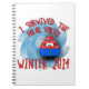 ¡Sobreviví (apenas) el vórtice polar del invierno 2014! Características del diseño divertidas un pequeño pingüino envuelto todo para arriba contra el vórtice que remolina tachonado con los copos de nieve, detrás de él. El texto me lee SOBREVIVIÓ EL INVIERNO POLAR 2014 del VÓRTICE.