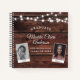 Libro de invitados de graduación rústica con tu nombre personalizado, escuela y clase de en tipografía moderna junto con 2 fotos de adultos mayores y fotos de la infancia en un fondo de madera con diseño de luz de cuerda.