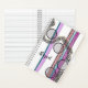 Este portátil útil es ideal para oficina, hogar o escuela y puede ser personalizado con su nombre. Se trata de una acuarela abstracta y un diseño de pluma de rayas y círculos sobre un fondo blanco, con rayas rosadas, albaricoquis y azules rotas por un patrón de doodle de círculos fluidos en negro y gris. La obra es original y sólo está disponible en The Art of Being Beth.