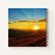 cuaderno de escritura de cita inspiradora, diario representa una fotografía de cielos azules y una hermosa puesta de sol dorada sobre las montañas. Presenta la Biblia Verse Isaías 60:1, "Levántate, resplandece, porque tu luz ha llegado, y la Gloria del SEÑOR se levanta sobre ti".