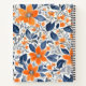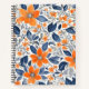 Una colorida textura de flores naranjas y hojas y tallos azules sobre un fondo blanco que combina la calidez del naranja con la frescura del azul.