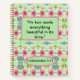 Encantador Jardín Ecléctico: Descripción del Cuaderno de Belleza Floral Diverso: Presentamos el "Encantador Jardín Ecléctico: Diverso Cuaderno de Belleza Floral", una publicación de diseño perfecto para sus pensamientos, notas e inspiración. La portada presenta un impresionante diseño floral combinado con un verso biblial significativo, lo que lo convierte en un encantador compañero para reflexiones diarias o escritura creativa. Diseño de portada: Motivo floral: El cuaderno muestra una compleja gama de flores diversas, creando una estética vibrante y atractiva que refleja la belleza de la naturaleza. Fondo: Un suave fondo verde realza los elementos florales, proporcionando un escenario apacible para el texto. Elementos de texto: Verso de la Biblia: En la parte superior de la portada, el verso "Ha hecho todo hermoso en su tiempo" está centrado, enmarcado elegantemente con un borde de tinta que añade un toque de sofisticación. Referencia: En la parte inferior, "Ecclesiastes 3:11" se muestra con atributos similares, garantizando un diseño cohesivo y equilibrado. Impresión general: El cuaderno "Encantador Jardín Ecléctico" no es solamente un objeto práctico; es una hermosa expresión de fe y creatividad. Ideal para el periodismo, la toma de notas o como un regalo para amigos y seres queridos, este cuaderno anima la reflexión y la inspiración. Imaginen abrir este encantador cuaderno, donde la belleza de la naturaleza se encuentra con potentes palabras de sabiduría, ¡inspirándolos en cada página! Explore toda la gama de productos disponibles en nuestra colección Achempong Zazzle y encuentre el portátil perfecto para sus necesidades. ¿Te gusta este diseño? ¡Compártelo con tus amigos y familiares!