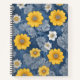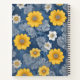 Un patrón de flores amarillas y blancas que florecen sobre un fondo de hojas azules, creando un diseño fresco y vibrante.
