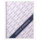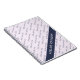 Un patrón de texto motivacional que dice "Jefa Señora CEO" en letras mayúsculas azul oscuro está colocado en un ángulo de 45 grados sobre un delicado fondo malva claro. Una cinta del mismo azul oscuro se coloca sobre el patrón en el mismo ángulo, en la que puedes poner tu nombre (o el de la jefa especial a quien le estás dando este cuaderno como regalo). Puedes revisar tanto el patrón de tipografía única como el nombre en la plantilla de personalización (solo ten cuidado de que el texto del patrón no sea demasiado largo para caber en el marco de texto).