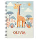 Este cuaderno personalizado y lindo presenta una jirafa adorable y caprichosa en un hermoso fondo de sabana.