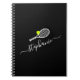 Pequeño portátil de tamaño medio página con un elegante y femenino personalizado negro y blanco monograma de tenis con nombre personalizado en una letra de escritura femenina perfecta para la tenista, entrenadora, instructora, consejera del campamento o nuevo miembro del equipo.