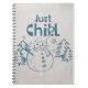 A cute, playful doodle like illustration of a snowman surrounded by tree and a text, that says "Just Chill".